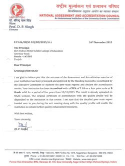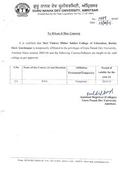 National Assessment & Accreditation Council (NAAC) Guru Nanak Dev University (G.N.D.U) National Council for Teacher Education (NCTE) Govt. of Punjab